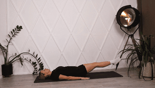 매트에 등을 대고 누운 상태에서 무릎 사이에 운동용 볼을 끼웁니다. 무릎은 90도로 구부린 채 다리를 공중으로 들어 올려 시작 자세를 만듭니다. 발을 바닥 쪽으로 내렸다가, 다시 공중으로 들어 올립니다.