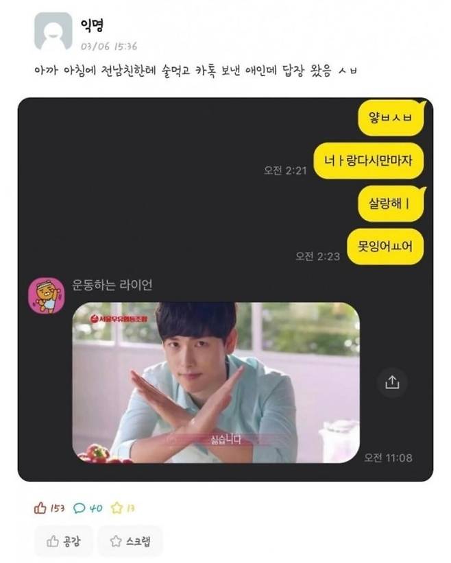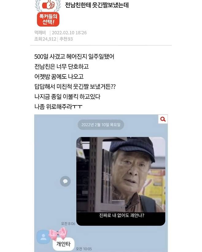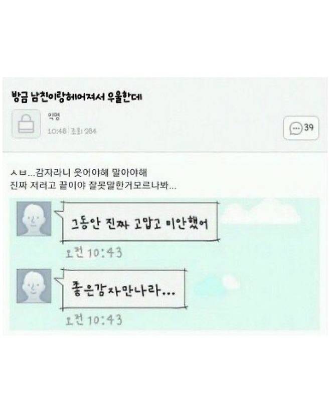 그동안 진짜 고맙고 미안했어..좋은 감자 만나라..