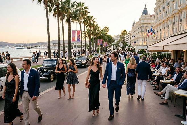 너무 거창한 드레스가 아니더라도 남성은 리넨 재킷이나 깔끔한 셔츠, 여성은 칵테일 드레스 정도만 갖춰도 칸의 분위기에 자연스럽게 스며들 수 있습니다. 특히 이 시기 남프랑스의 상징인 로제 와인을 주문해서 들고 있다면 당신은 이미 칸의 진정한 주인공입니다. 또한, 길거리에서 셀럽을 마주치더라도 과도한 신체 접촉이나 고성은 삼가고 미소로 인사를 건네는 것이 칸의 매너입니다.