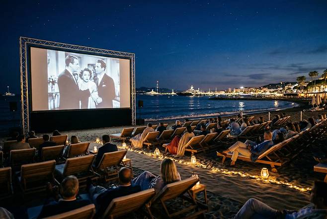 공식 상영관 입장은 바늘구멍 통과하기보다 어렵지만, 2026 칸 영화제의 낭만을 즐길 방법은 따로 있습니다. 바로 마세 해변에서 매일 밤 9시 30분에 열리는 시네마 드 라 플라쥬인데요.