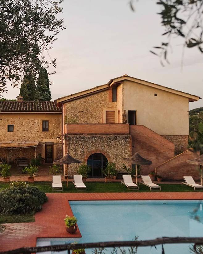 ✔️지속 가능한 포인트 : 포도밭과 올리브나무 숲, 재생 정원으로 둘러싸인 유기농 농장의 농가를 개조한 호텔-점토, 대마, 왕겨 등의 천연 재료를 단열재로 활용한 건물과 수제 테라코타 타일, 손바느질한 리넨 패브릭, 빈티지 가구로 꾸민 객실-호텔 내 혹은 이웃 농장에서 공수한 식자재로 선보이는 채식 기반 요리와 전통 방식으로 와인을 빚는 와이너리 투어를 통해 엿보는 토스카나의 미식 문화