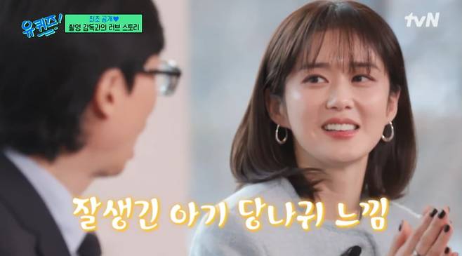 MC 유재석이 "남편분 사진을 살짝 봤는데 잘생겼다"라고 칭찬하자 장나라는 "실물이 조금 더 잘생겼다. 잘생긴 아기 당나귀처럼 생겼다"라고 애정을 가감없이 드러냈습니다.