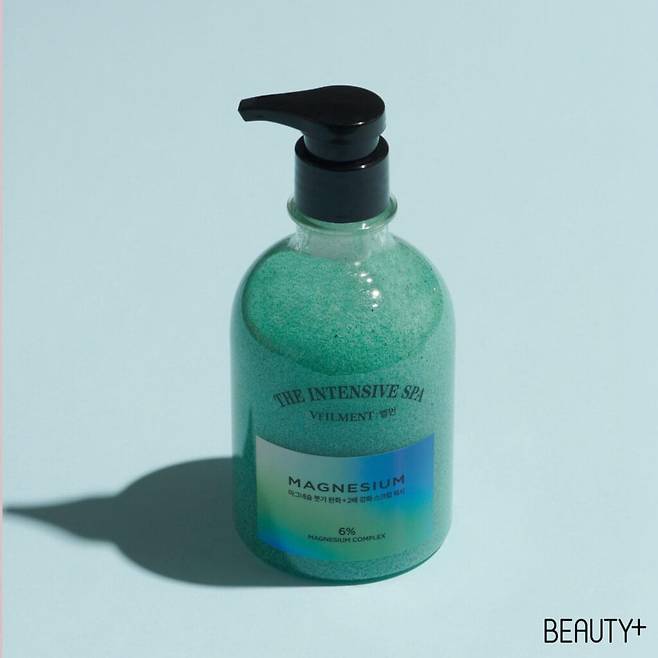 샤워와 동시에 보디 스크럽까지 할 수 있는 벨먼 인텐시브 스파 스크럽 바디워시. 이 중 마그네슘은 마그네슘 마사징 콤플렉스™를 6% 함유해 피부 혈행을 개선하고 종아리 부기를 완화하는 효과도 얻을 수 있다. 400ml 1만3천9백원.