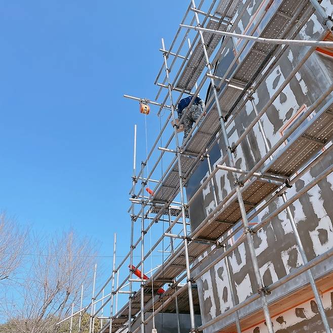 어느덧 외관 공사가 마무리가 되어가고,