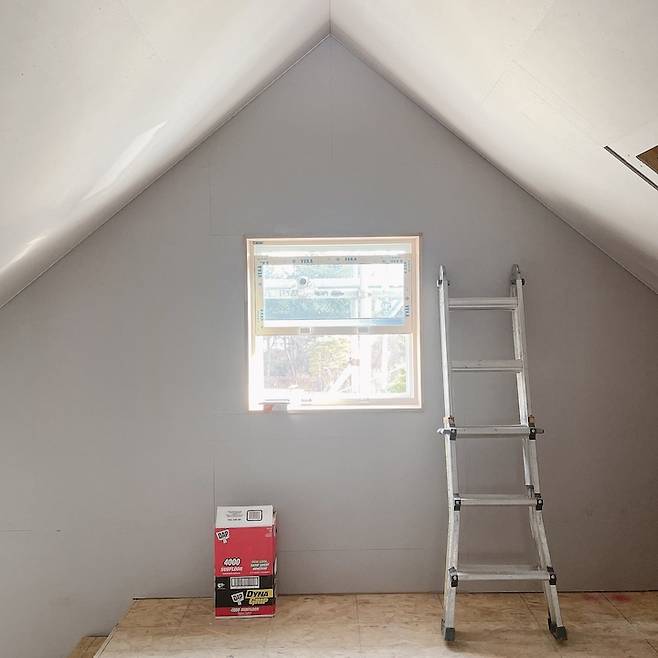 2층 집에 다락은 꼭 있어야 한다던 가족들의 의견으로 박공지붕의 소박한 다락도 생겼어요.