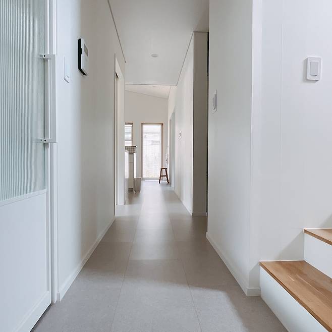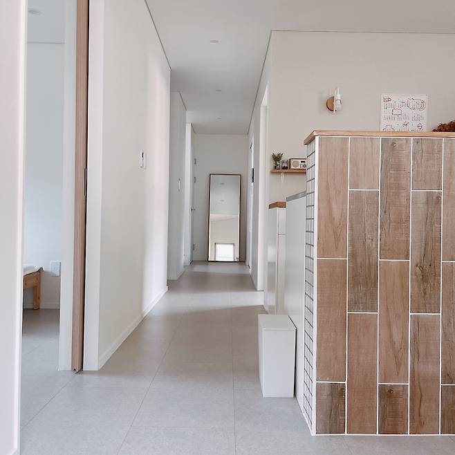 주방에서 바라본 복도를 중심으로 오른쪽에는 부부방, 왼쪽으로는 아이들 방이 있어요.