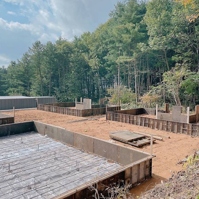 아무것도 없던 땅에 기초 유로폼이 설치가 되고 나니 진짜 집을 짓는구나 느껴졌답니다.