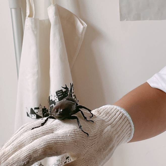 마당에 있던 장수풍뎅이는 힘이 어찌나 센지 손에 올려놓으니 떨어질 생각을 안 하네요. 곤충 싫어하는 분들도 계시겠지만 저는 곤충을 좋아하는 편이라서 볼 때마다 신기해요. 둘째 아이가 우리 집에서 키우자고 말하곤 하는데 우리도 우리 집에 사는 게 제일 좋듯이, 곤충 친구들도 자연 속에 살아가는 게 진짜 집이고 제일 좋을 거라고 말해주고 있어요.