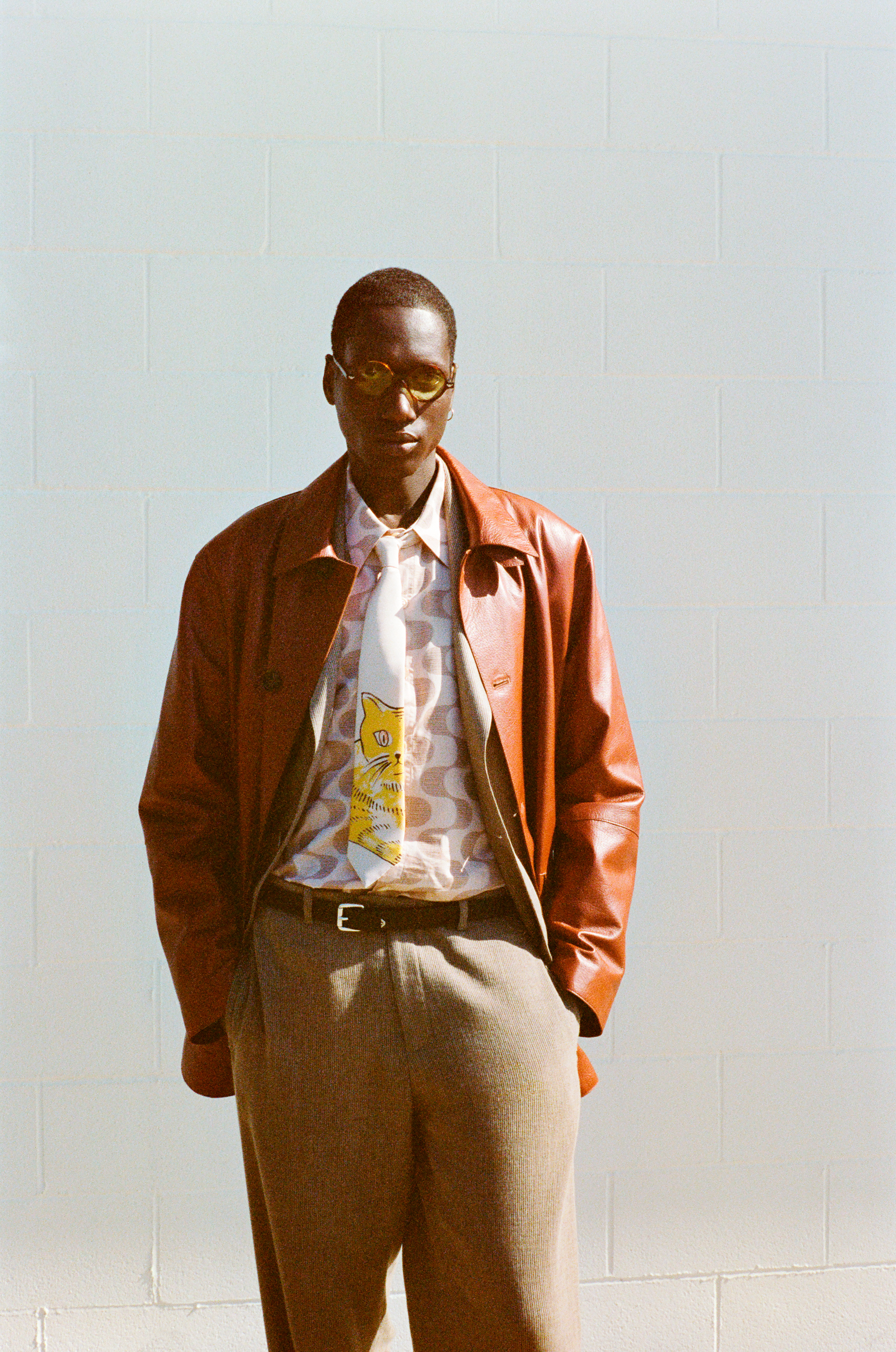 남성복과 유니섹스 컬렉션은 직선적인 라인의 가죽 코트,