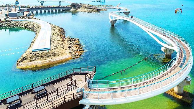 그 바다 한가운데, 발밑으로 파도를 내려다보며 걷는 산책로가 있다.