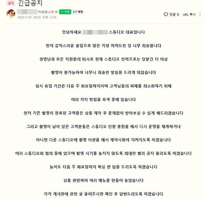 대전 유명 아기 전문 스튜디오를 운영하던 B씨도 아기 성장앨범 계약금을 받은 뒤 지난해 11월부터 돌연 휴업에 들어가자 피해자들은 B씨를 경찰에 신고했다.