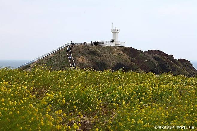 제주의 동쪽 끝자락에 위치한 섭지코지는 푸른 바다를 배경으로 유채꽃을 감상할 수 있는 독보적인 장소다. 해안 절벽을 따라 피어난 노란 꽃들이 거친 바다와 대조를 이루며 강한 시각적 즐거움을 준다. 언덕 위 하얀 등대나 독특한 건축물들을 배경으로 사진을 찍으면 마치 영화 속 한 장면을 그대로 옮겨놓은 듯한 분위기가 연출된다.