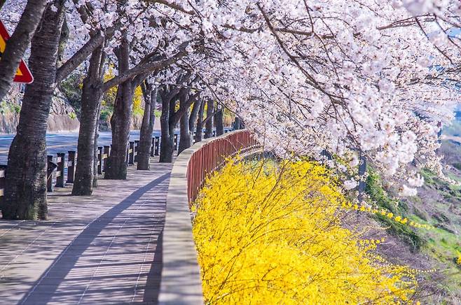 이 길은 드라이브 코스로도 인기가 높다. 강을 따라 이어지는 도로를 달리다 보면 창밖으로 벚꽃이 이어지고, 강과 산이 어우러진 풍경이 함께 펼쳐진다. 차를 세우고 강변을 따라 산책을 즐기는 사람들도 많아 여유로운 봄 여행을 즐기기 좋은 곳이다.
