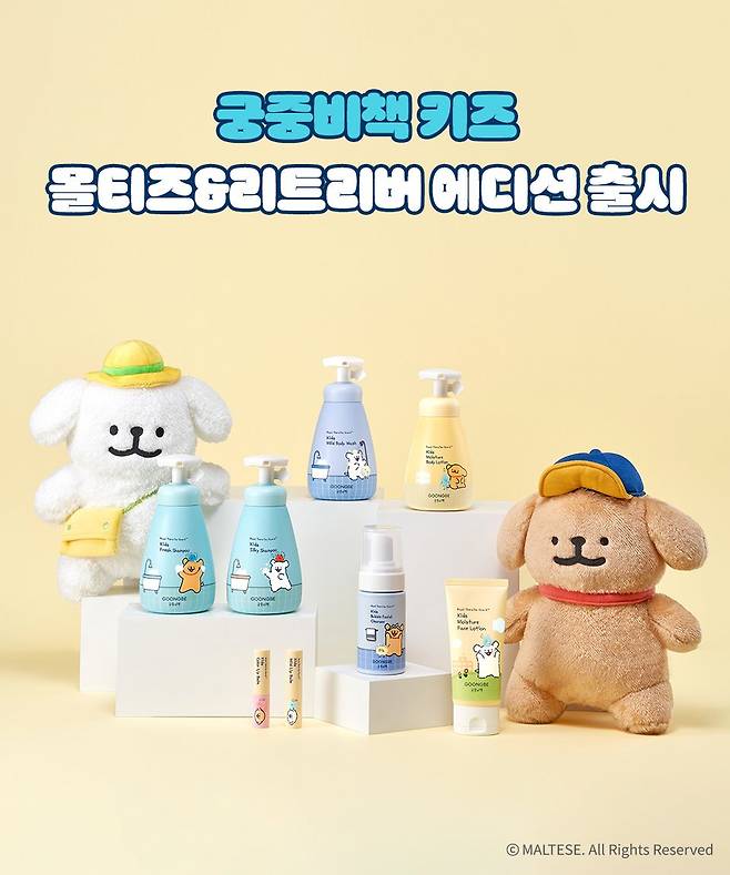 영유아 스킨케어 브랜드 궁중비책이 인기 캐릭터 '몰티즈 앤 리트리버'와 손잡고 키즈라인 한정 에디션을 출시했다. 아이들의 즐거운 스킨케어 시간을 위해 특별히 기획된 이번 에디션은 귀여운 캐릭터 디자인과 풍성한 혜택으로 소비자들의 눈길을 사로잡고 있다.
