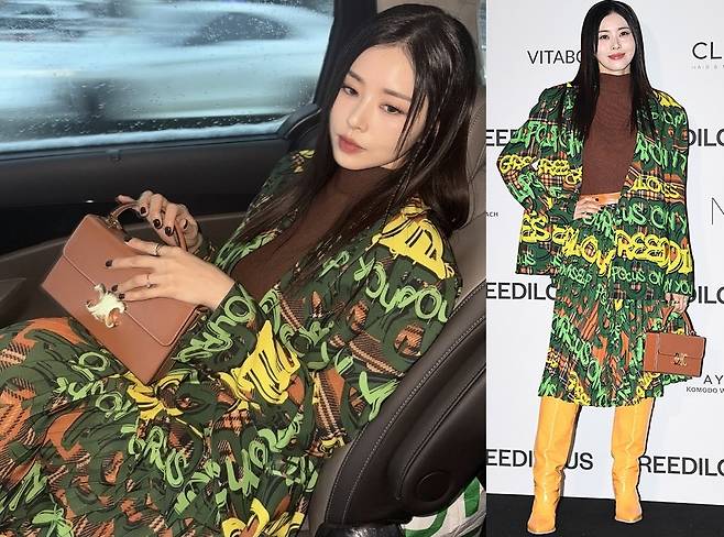 특히 클래식한 카멜 컬러 미니백까지 더하며 과감하면서도 세련된 믹스매치를 선보였습니다.