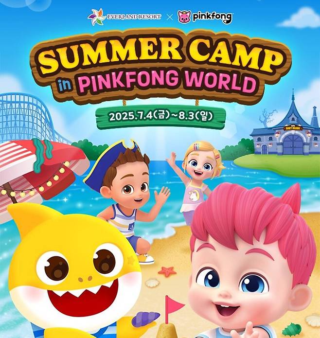 올여름 에버랜드에 선보이는 '썸머 캠프 인 핑크퐁 월드(SUMMER CAMP in PINKFONG WORLD)'에서는 전세계 유튜브 조회수 1위 기록을 보유하며 올해 10주년을 맞은 '아기상어'와 11개국 넷플릭스 키즈 부문 1위에 오른 '베베핀' 등 더핑크퐁컴퍼니의 인기 IP를 다채롭게 체험할 수 있다.