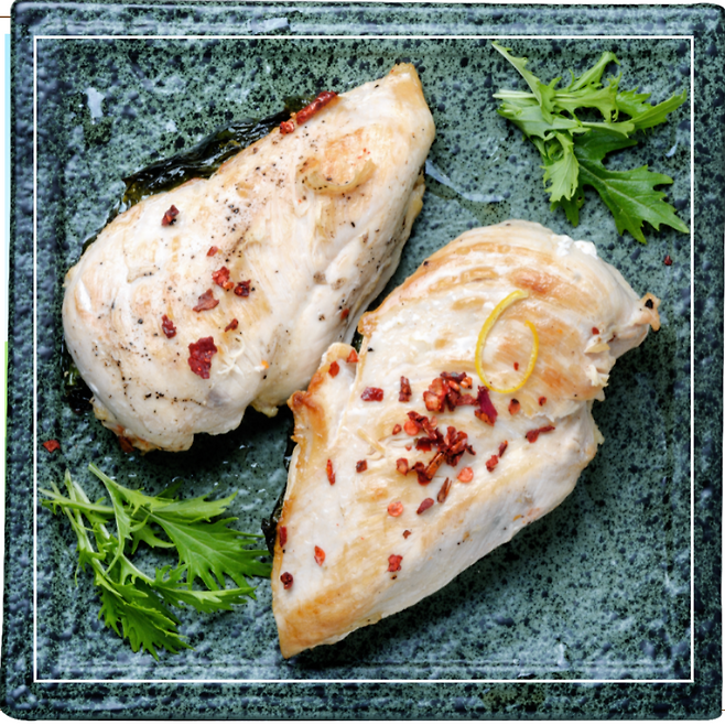 닭가슴살, 계란, 생선(연어, 고등어), 두부, 콩류(렌틸콩, 병아리콩), 그리스 요거트
