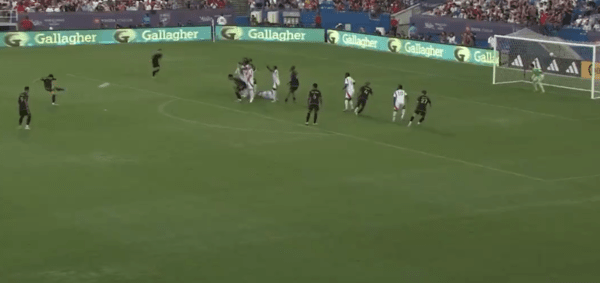 전반 6분 프리킥 상황에서 오른발 인프런트킥으로 강력한 슈팅을 시도했고, 볼을 빨랫줄을 타고 날아가듯 구석에 꽂혔다. 댈러스의 골키퍼 마이클 콜로디는 이를 선방하기 위해 제 한 몸을 던졌으나, 상단 모서리에 그대로 빨려 들어갈 정도로 완벽했다. 때문에 손흥민의 선두는 따 놓은 당상처럼 보였다.