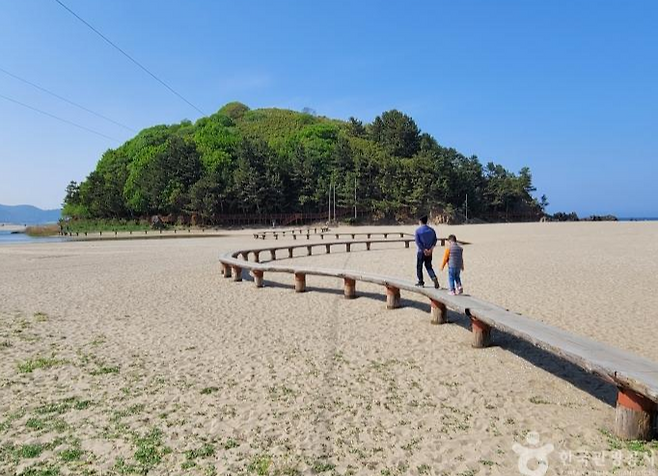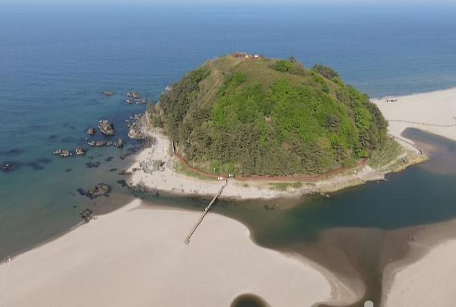 덕봉산은 원래 섬이었으나 오랜 세월 모래가 쌓이며 육지와 이어진 ‘육계도’ 형태를 띠고 있습니다.