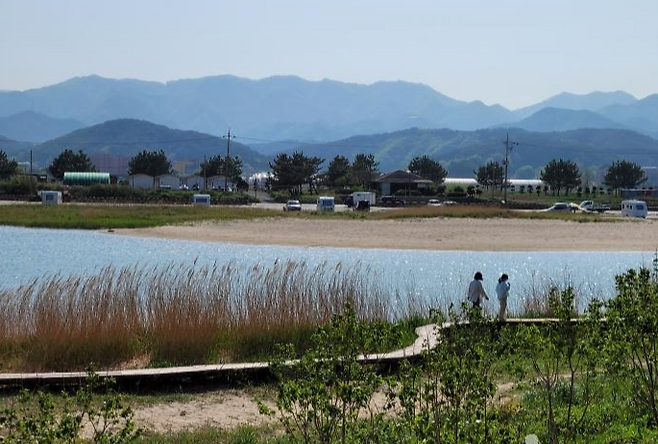 맹방 쪽은 넓지만 탐방로와 다소 거리가 있고, 덕산 쪽이 더 가깝습니다.