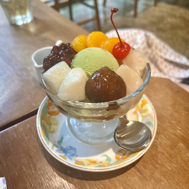 '녹기 전에'에서 발길을 옮긴 곳은 광흥창역 인근에 위치한 카페 '나팔꽃'이에요. 이곳엔 아주 특별한 여름 한정 메뉴가 있는데요. 바로 일본식 디저트 '안미츠'예요! 안미츠는 우뭇가사리 묵으로 만든 미츠마메에 팥, 과일, 떡, 아이스크림, 꿀 등을 올린 디저트인데요.🍊 '나팔꽃'에서는 우뭇가사리 묵 대신 감귤, 찹쌀떡, 밤조림, 녹차 아이스크림 등의 토핑이 올라간 안미츠를 먹을 수 있어요. 비주얼부터 맛있어 보이죠?😋 안미츠에는 흑설탕 시럽도 같이 나오는데요. 취향에 따라 뿌려 먹으면 돼요. 안미츠는 아이스 아메리카노와 굉장히 잘 어울린대요!(사장님 추천 조합) 일본 가는 대신 광흥창역에서 일본 디저트를 먹어보세요!🛫