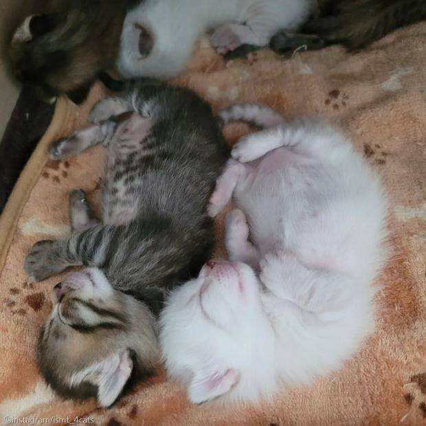 시루가 데려온 이 하얀 새끼 고양이의 이름은 '설탕이'다. 시루는 다섯 마리 새끼 고양이를 낳았는데 그중에서도 유독 설탕이만 집사에게 자꾸 데려왔다고.