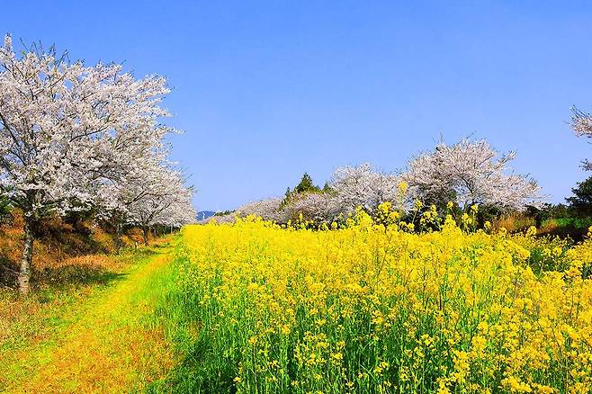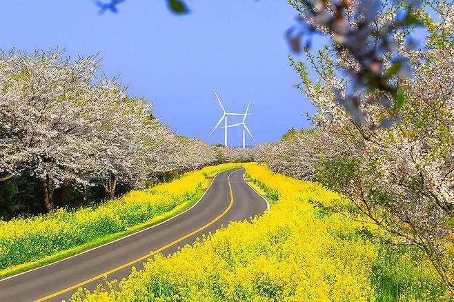 제주에서 가장 아름다운 드라이브 코스로 손꼽히는 이 길은 매년 3~4월이면 유채꽃과 벚꽃이 어우러져 환상적인 풍경을 만들어냅니다.