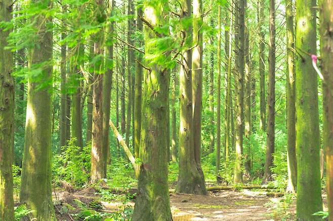 숲길을 걷는 동안 울창한 편백나무와 삼나무에서 나오는 피톤치드를 마음껏 마시며 몸과 마음을 정화할 수 있습니다.
