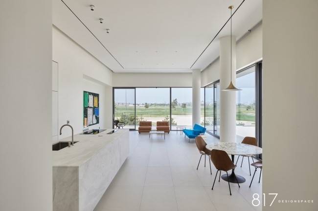 주거 공간을 주로 다루다 보니 사무실 역시 집처럼 편안한 공간에서 다양한 활동을 할 수 있도록 하는 것이 좋겠다고 생각했다. 그래서 사무실은 때로는 회의와 작업을 위한 공간이지만 때로는 직원들과 편안히 휴식을 취하면서 디자인에 관한 이야기를 자유롭게 나눌 수 있는 담소의 공간이자 생활공간이다. 그런 점을 고려해 집을 모티브로 사무실과 주방, 다이닝룸, 거실, 집무실에 경계를 두지 않는 개방형 레이아웃을 선택했다. 공간을 따로 분리해놓지 않다 보니 다이닝룸은 클라이언트와 미팅이 이뤄지기도, 직원들과 식사를 함께하기도 한다.
