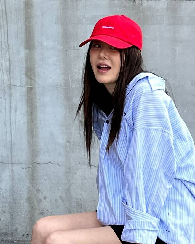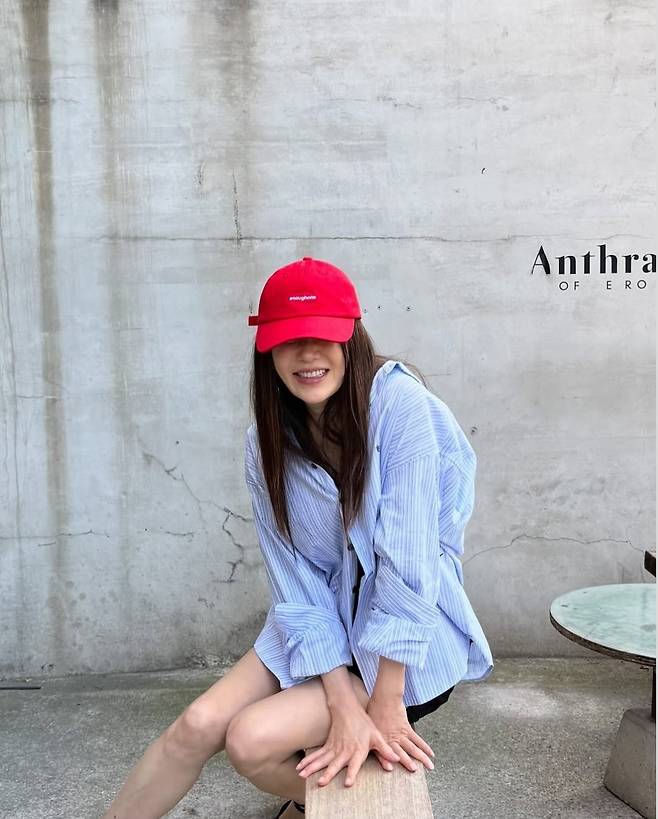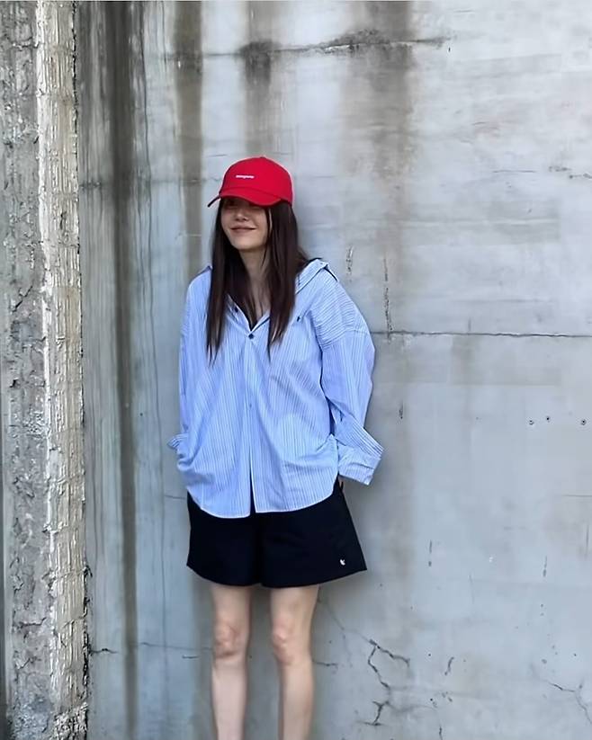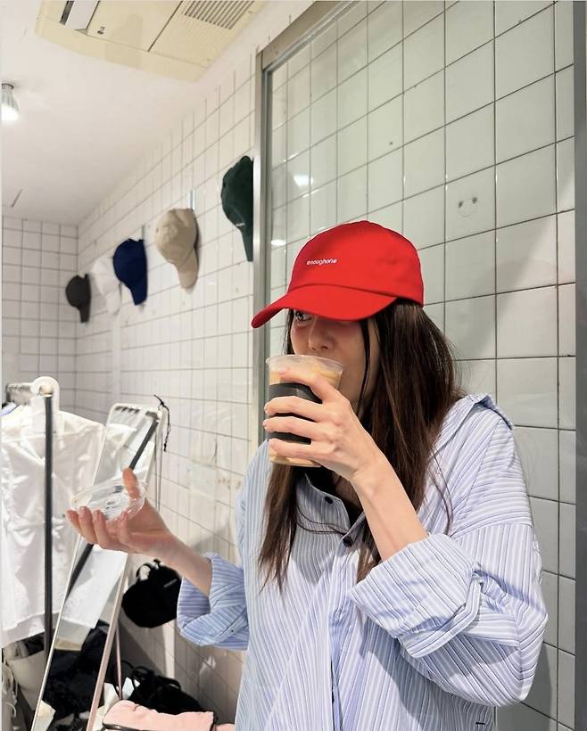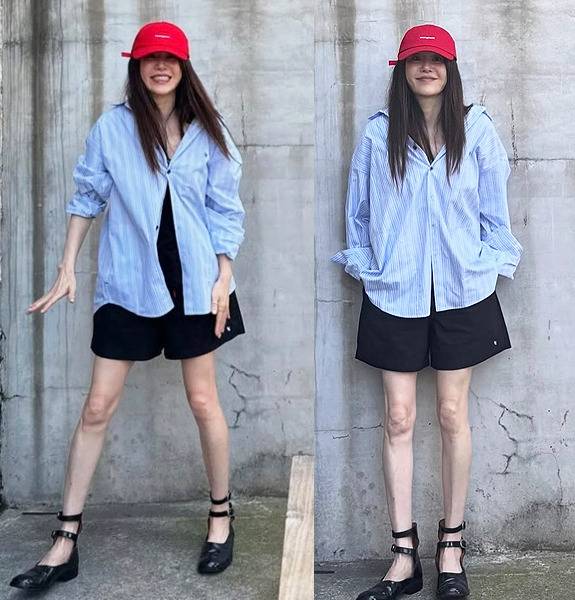 여기에 포인트가 된 것은 바로 새빨간 볼캡. ‘enoughone’ 로고가 새겨진 이 캡은 그의 전체 스타일링에 유쾌한 에너지를 더하며, 고현정 특유의 반전 매력을 극대화했습니다.
