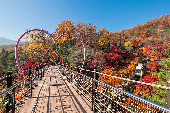 단풍으로 물든 길을 따라 걷다 보면 국내 최대 규모의 이끼원, 하얀 자작나무가 펼쳐진 자작나무 숲과 소망 돌탑, 250점의 명품 분재가 전시된 분재원 등 다양한 명소가 이어진다. 단풍과 어우러진 풍경은 사진 찍기에도 제격이다.