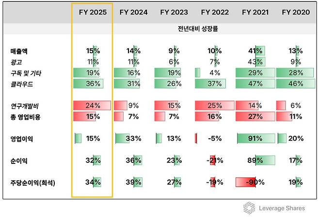 또한 클라우드 부문은 FY2025에 FY2024 대비 25% 성장하며 전체 매출의 15%를 차지해, AI 제공의 기반 역할을 강화하는 반면, 광고는 매출 비중이 완만히 감소해도 여전히 전체의 약 4분의 3을 차지하는 ‘코어’로 남아 있다는 구조가 강조된다.