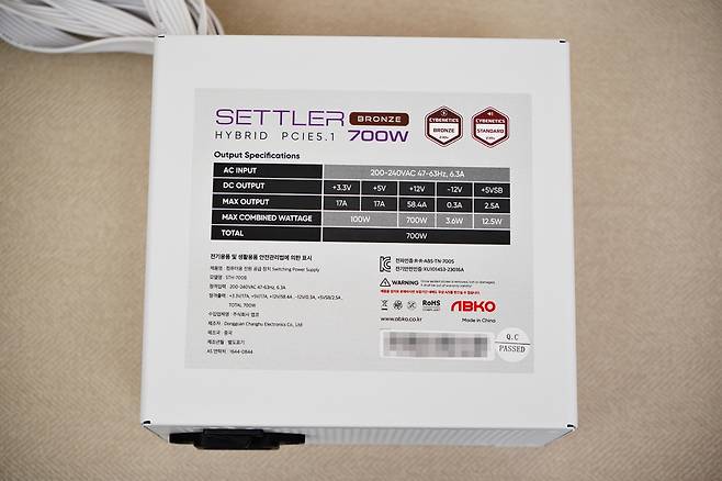 "PC 컴퓨터파워서플라이앱코 SETTLER 하이브리드 PCIE5.1 STH-700B BRONZE 화이트"