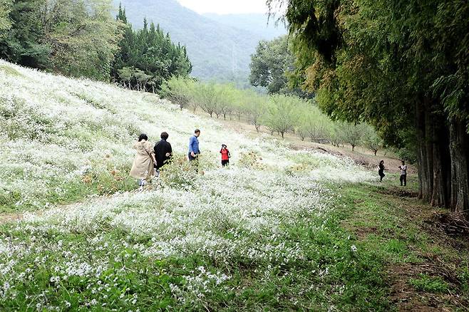 곳곳에 설치된 테마 꽃단지에는 형형색색의 야생화가 17만 본 넘게 식재돼 있어, 봄이면 노란 애기똥풀부터 분홍 자운영, 하얀 꽃창포까지 다채로운 색이 땅을 수놓습니다.