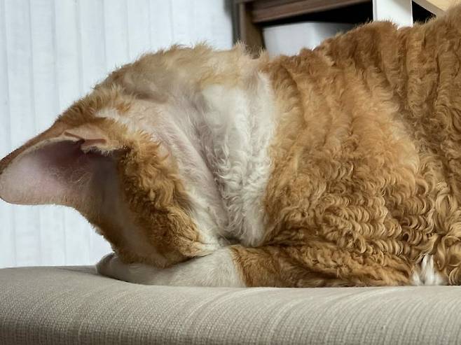 곱슬 고양이는 보통 고양이와 다르게 속털만 가지고 있어요. 게다가, 속털이 짧고 얇아서 피부가 약한 편입니다. 그래서 햇볕을 많이 쬐면 그 부위가 타거나 피가 날 수 있다고 합니다.