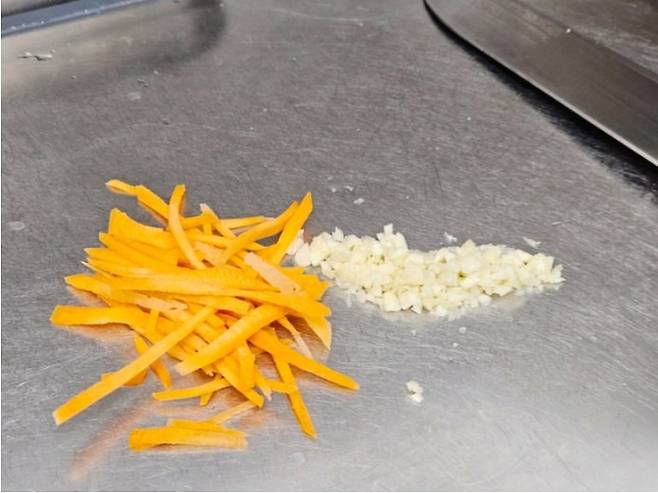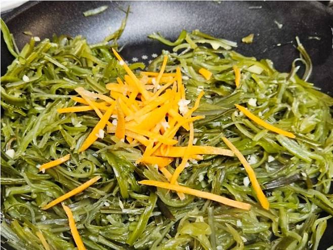 채썬 당근넣고 당근이 살짝 익을 정도로
