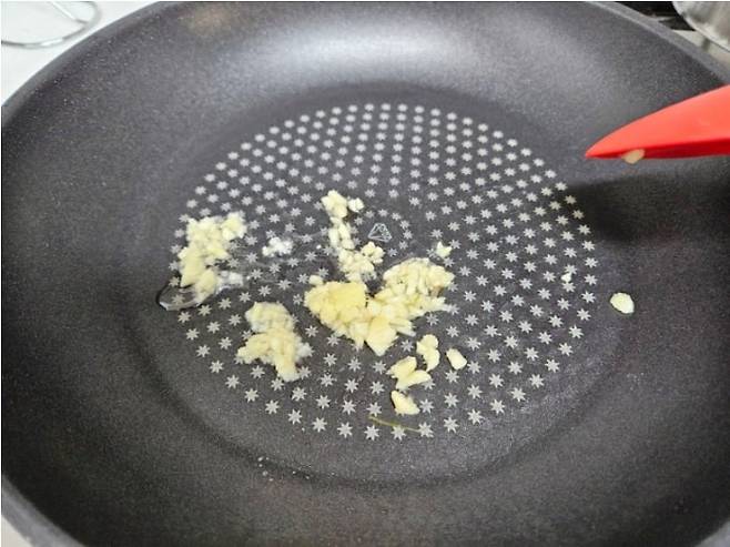 마늘 볶아요. 불이 쎄면 마늘이 타고