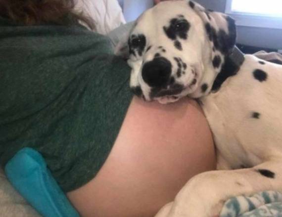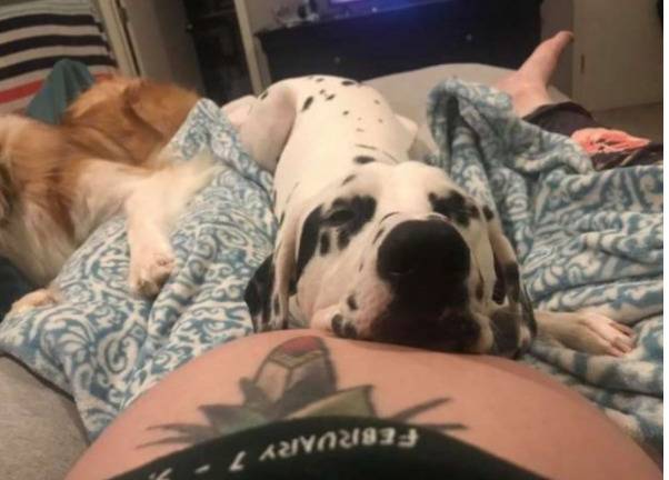 제스 씨는 순간 울컥하는 감정을 느꼈다고 전했는데요. 두 강아지는 태동이 느껴지는 배에서도 전혀 놀라지 않고 그 자리를 지켰다고 합니다.