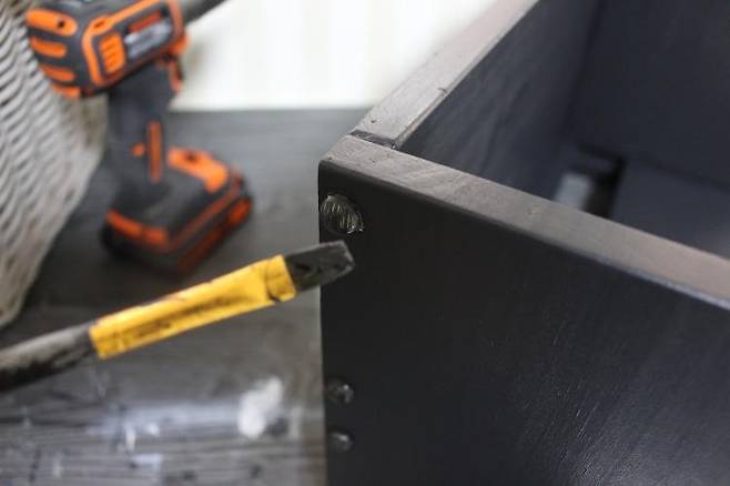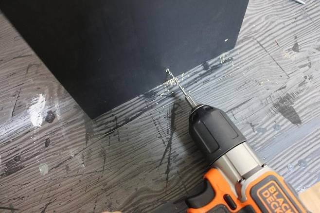 목공 본드가 굳은 후 2차로 튼튼하게 나사고정을 했습니다. 이번에 나사 머리가 숨도록 이중 기리 내는 작업은 패스했습니다.