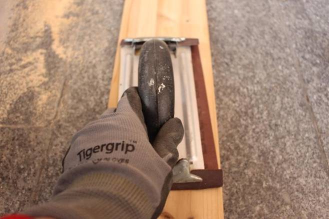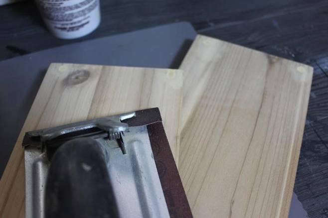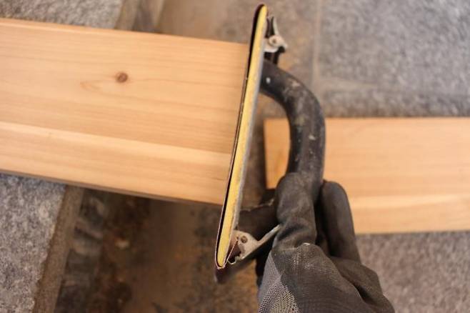 커팅 후 나무의 면을 곱게 다듬기 위해 커팅 면과 나무면을 따라 사포를 했어요.