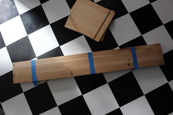 책꽂이를 만들기에 적합한 옆판 용도 나무판이 두 개 있었어요.