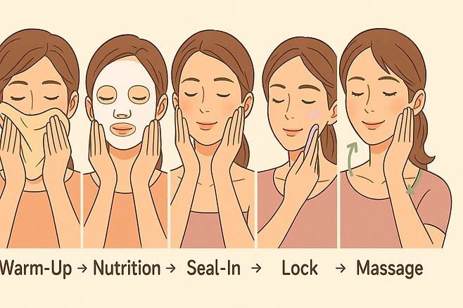3. Seal‑in (30초): 시트 제거 후 남은 에센스 손바닥 열기로 흡수.