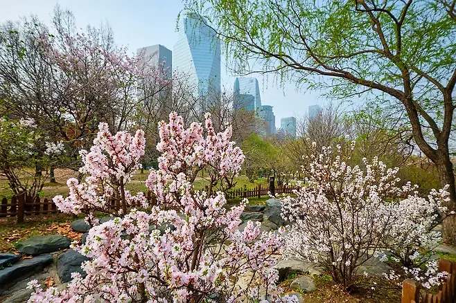 이맘때쯤이면 튤립도 함께 피어나므로, 다채로운 봄꽃을 동시에 감상할 수 있다. 중간 광장에 서 있는 살구나무는 흰 꽃이 유독 아름다워 인기 포토존으로 손꼽힌다.