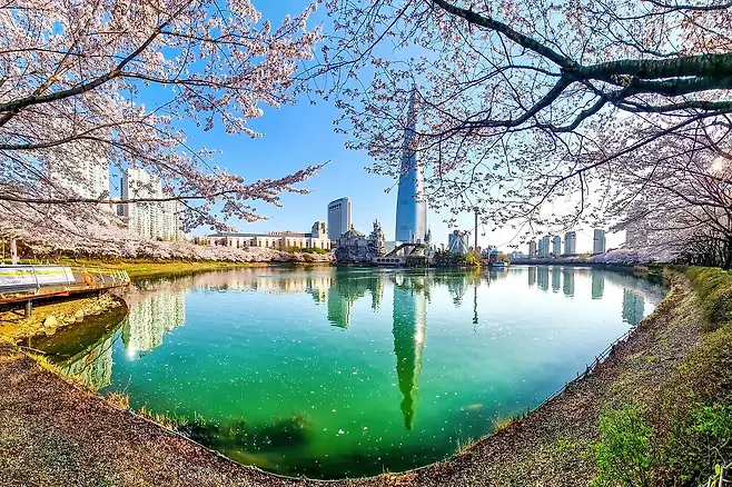 롯데월드타워를 배경으로 펼쳐진 벚꽃 풍경은 외국인 관광객들 사이에서도 입소문이 자자하다. 호수를 둘러싼 벚꽃길이 낮에는 화사하고, 밤에는 조명과 함께 로맨틱해지는 것이 포인트다. 4월 초부터 봄 축제가 열려 더욱 활기차며, 호수 주변 카페·음식점이 풍부해 데이트 코스로도 잘 알려져 있다.