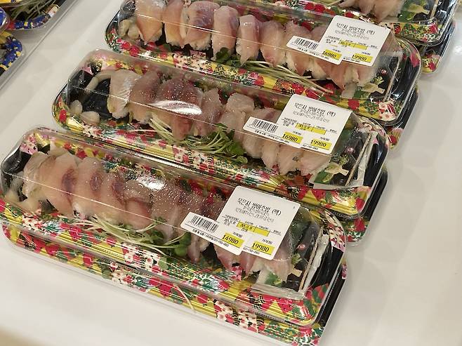 묵은지가 함께 들어있는 겨울철 별미 방어초밥으로 기름지고 고소한 방어와 상큼한 묵은지가 조화로운 상품이에요.