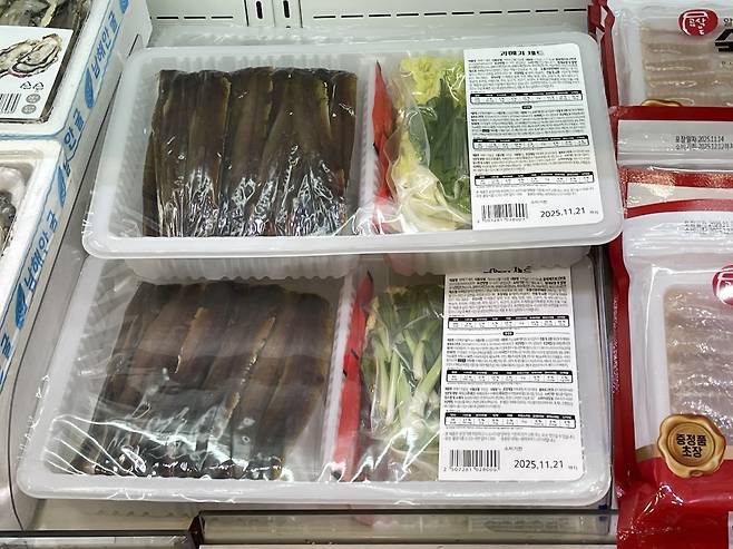 먹기 편하게 손질된 꽁치 과메기로 잘 손질된 채소세트 및 과메기 전용 김, 소스가 동봉되어 있어요.