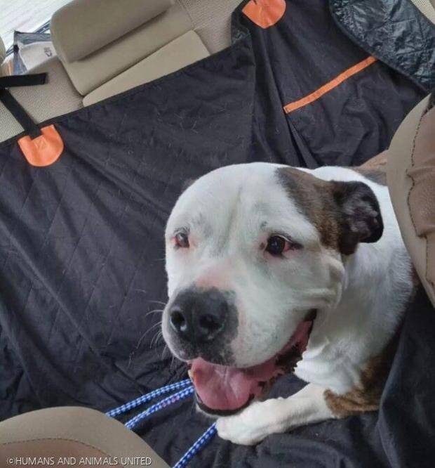 단체의 자원봉사자가 사만다를 데리러 갔을 때, 녀석은 사진에서 보았던 것처럼 완전히 절망적인 모습이었다. 그러나 차에 탄 지 불과 몇 분 만에 녀석의 표정은 달라졌다. 사만다의 얼굴에 미소가 번지기 시작한 것이다.