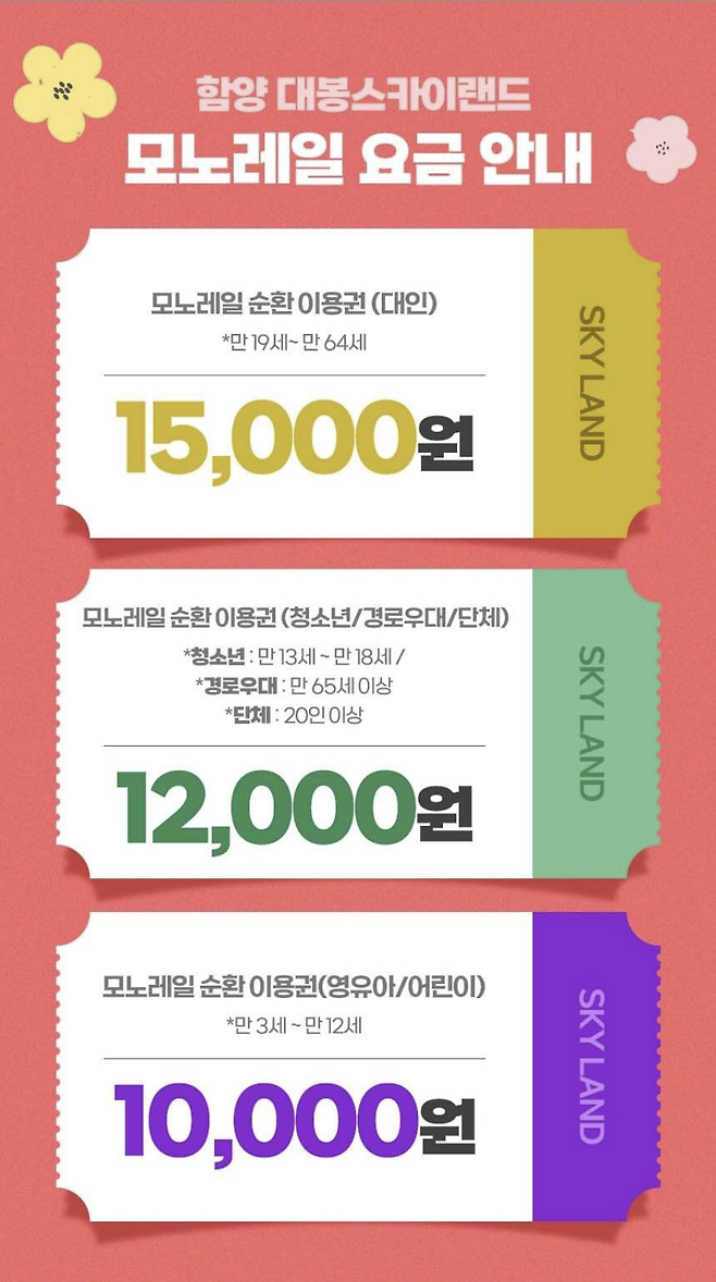 🔴 대봉산 모노레일 이용 요금
