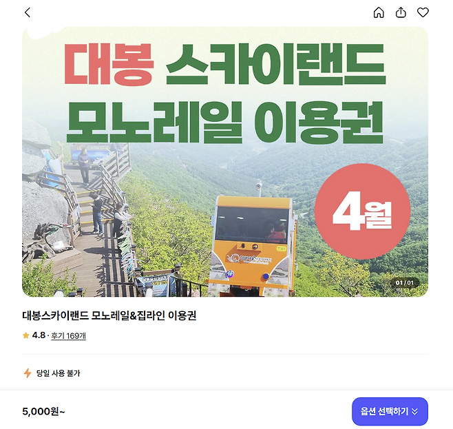 👇 아래 링크를 이용하시면 대봉산 모노레일 예약 페이지와 실시간 예매 정보를 바로 확인할 수 있습니다.
