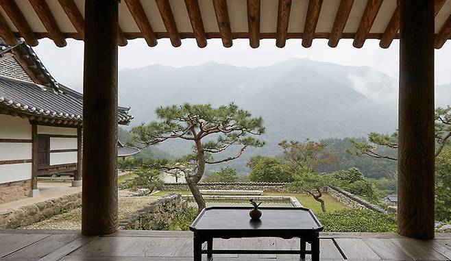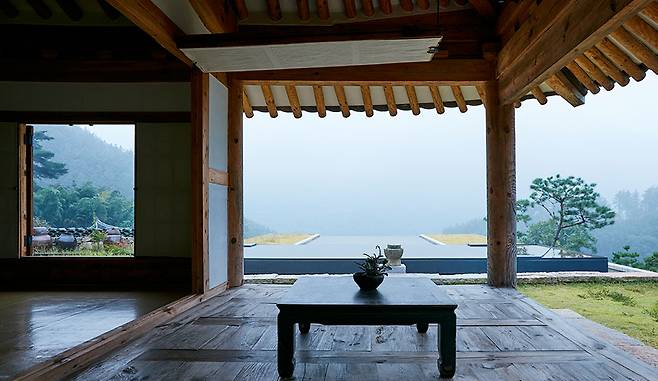 실제로 조선시대에 이조판서가 공부하던 서당과 250년 된 고택 등 세월을 담은 한옥을 옮겨와 만든 아원고택. 세 채의 한옥을 발견하기까지 15년의 세월이 걸렸다고 해. 숙소 앞으로는 거대한 산 뷰가 펼쳐져 압도적인 고요함을 느끼게 하지.